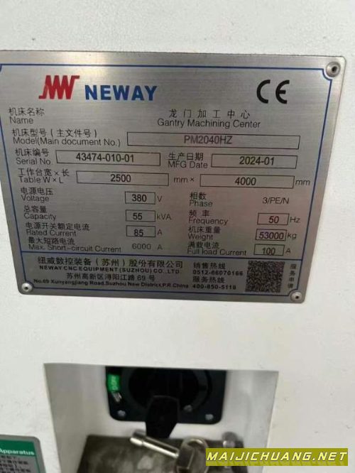 纽威PM2040HZ重型龙门加工中心,工作台4米/2.5米,门宽3.2米,门高1.6米,方滑枕420/420mm,BT50主轴,带中心出水,带一个手动侧铣头,发那科MFPlus系统_ 信息编号:S787220 |